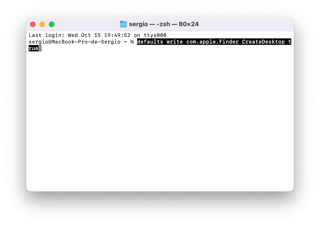 defaults write com.apple.Finder CreateDesktop true - Voer dan