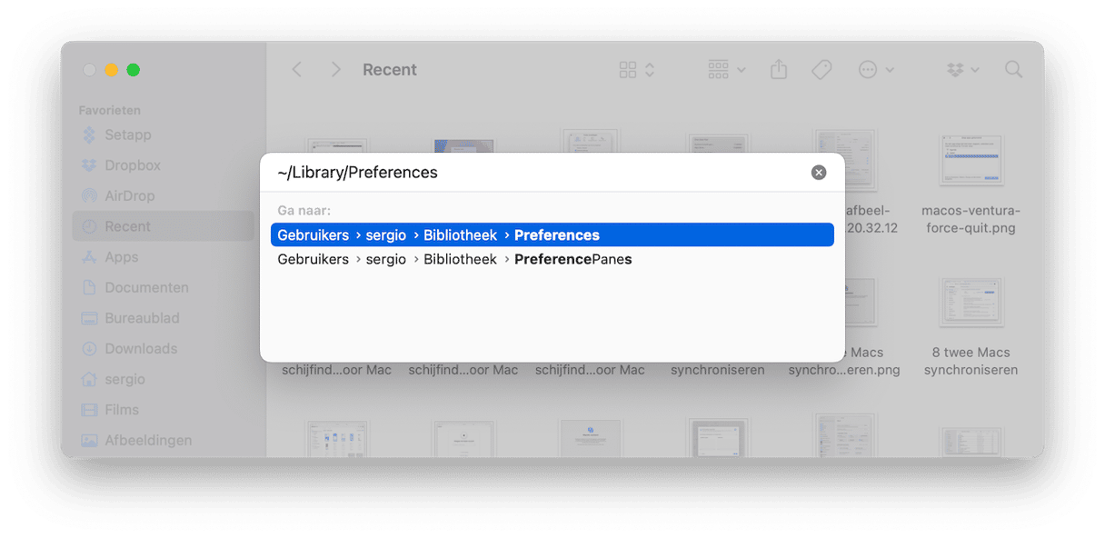 ~/Library/Preferencesen druk op Return. - Zoek de twee onderstaande bestanden, sleep ze naar je map 'Documenten' en herstart je Mac: