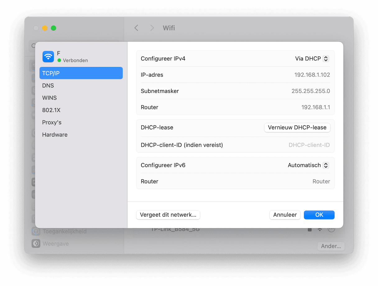 - Klik naast je wifinetwerk op 'Details' en ga naar 'TCP/IP'.