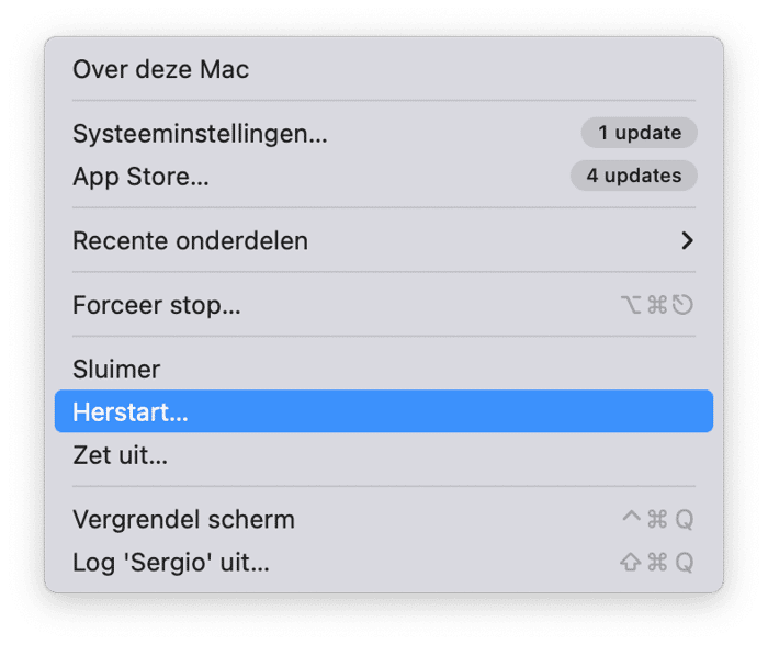 De Mac herstarten lost vaak problemen op, waaronder problemen met tijdelijke bestanden, die verhinderen dat je verbinding kunt maken met de Apple-servers. Het is ook aanbevolen om de Mac nu en dan te herstarten.