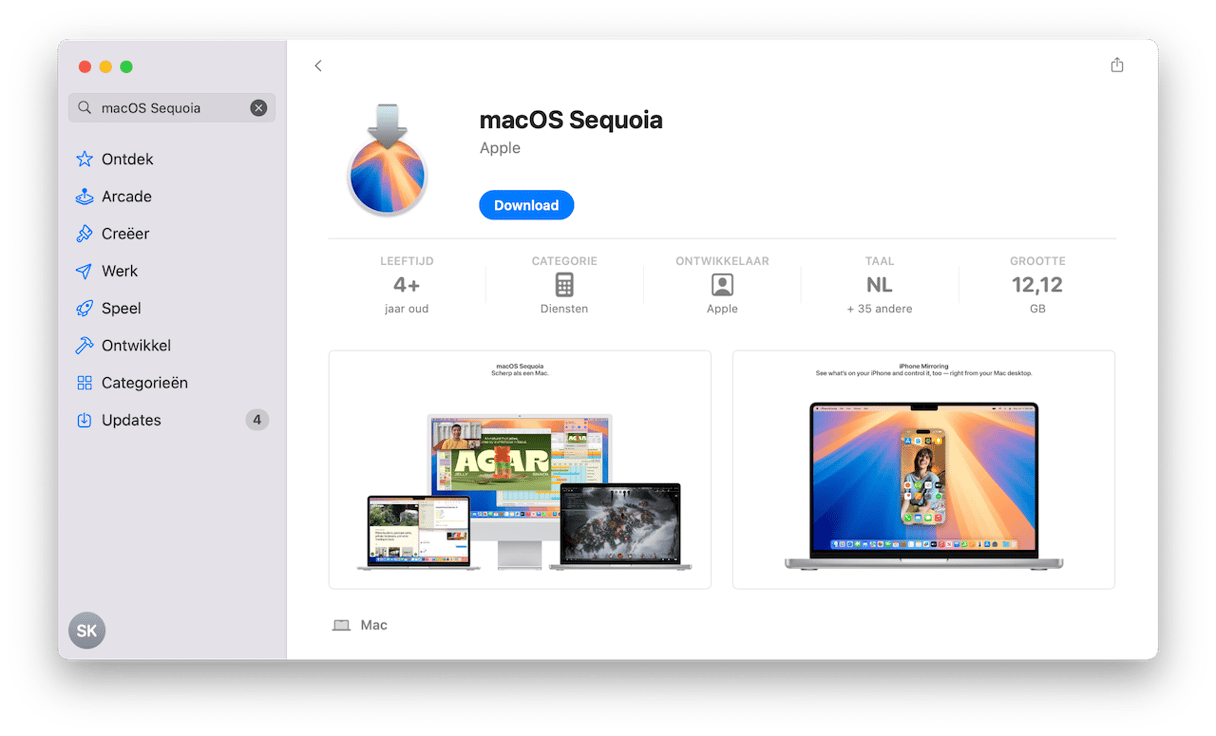 Als onze oplossingen tot dusver niet hebben geholpen, kun je proberen om de macOS-update via de App Store te installeren. Houd er wel rekening mee dat je je macOS alleen van bijvoorbeeld Ventura naar Sequoia kunt upgraden. Het is niet mogelijk om kleine updates te installeren, bijvoorbeeld van 15.0 naar 15.3.1.
