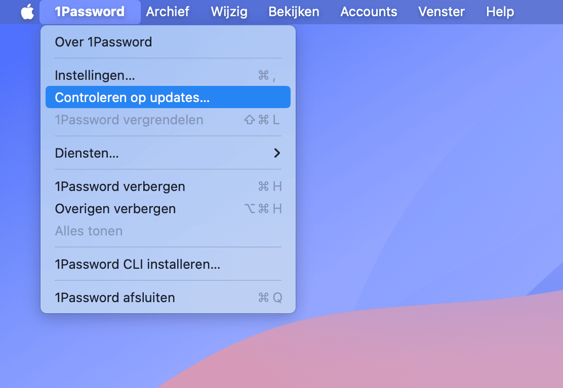 - Voor apps die niet uit de App Store komen: open de app zelf, klik op de naam in de menubalk en selecteer 'Zoek naar updates'.