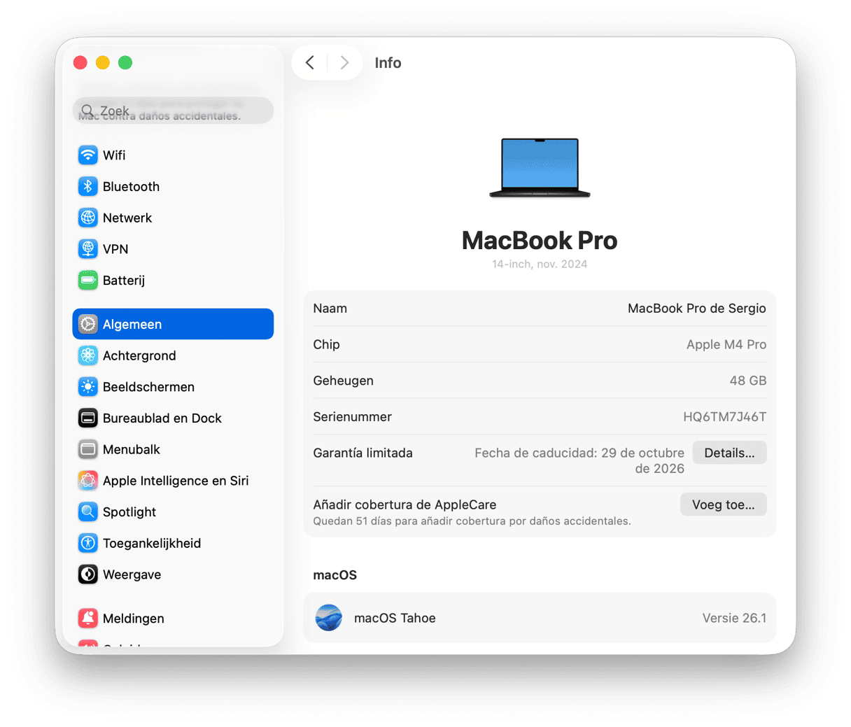 Je kunt controleren hoeveel geheugen je momenteel op je Mac hebt onder Systeeminstellingen > Algemeen > Over.