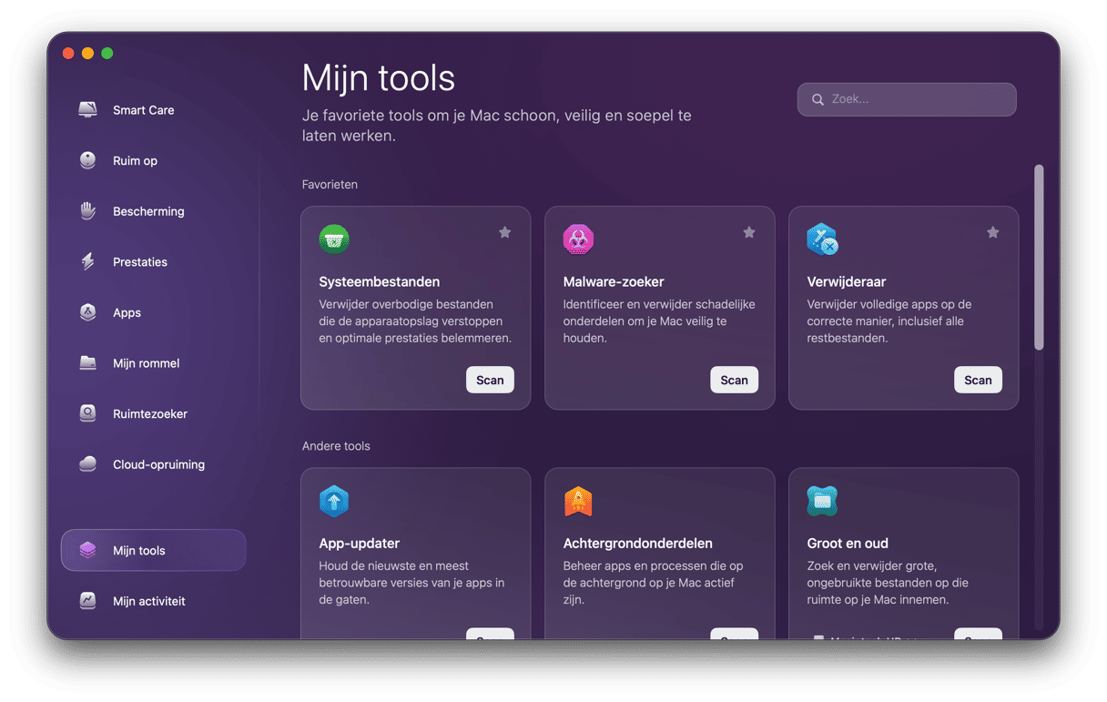 En als je sneller toegang wilt tot Verwijderaar, kun je de nieuwe functie Mijn tools uitproberen.Door deze te gebruiken, ga je rechtstreeks naar het verwijderen van apps zonder eerst de Apps-scan uit te voeren. Je kunt deze functie ook toevoegen aan je Favorieten, net als de andere tools die je vaak gebruikt.