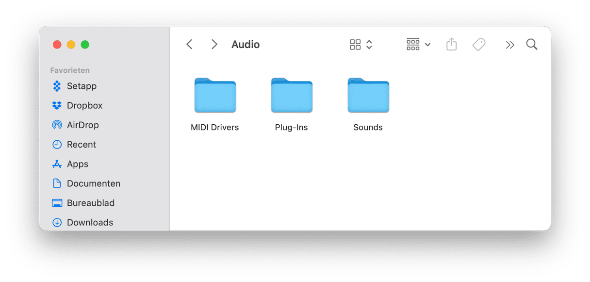 Audiobesturingsbestanden worden bijvoorbeeld geïnstalleerd in Bibliotheek/Audio en ~/Bibliotheek/Audio.