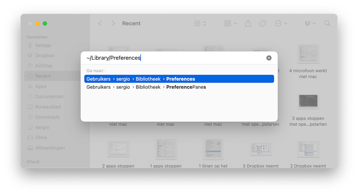 - Nadat je het pad in het venster van 'Ga naar map' hebt geplakt, druk je op Return om de map te openen.