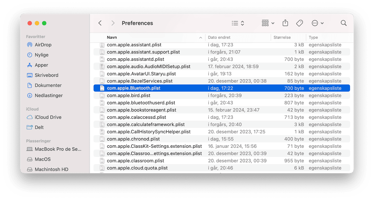 - Finn com.apple.Bluetooth.plist-filen og slett den.