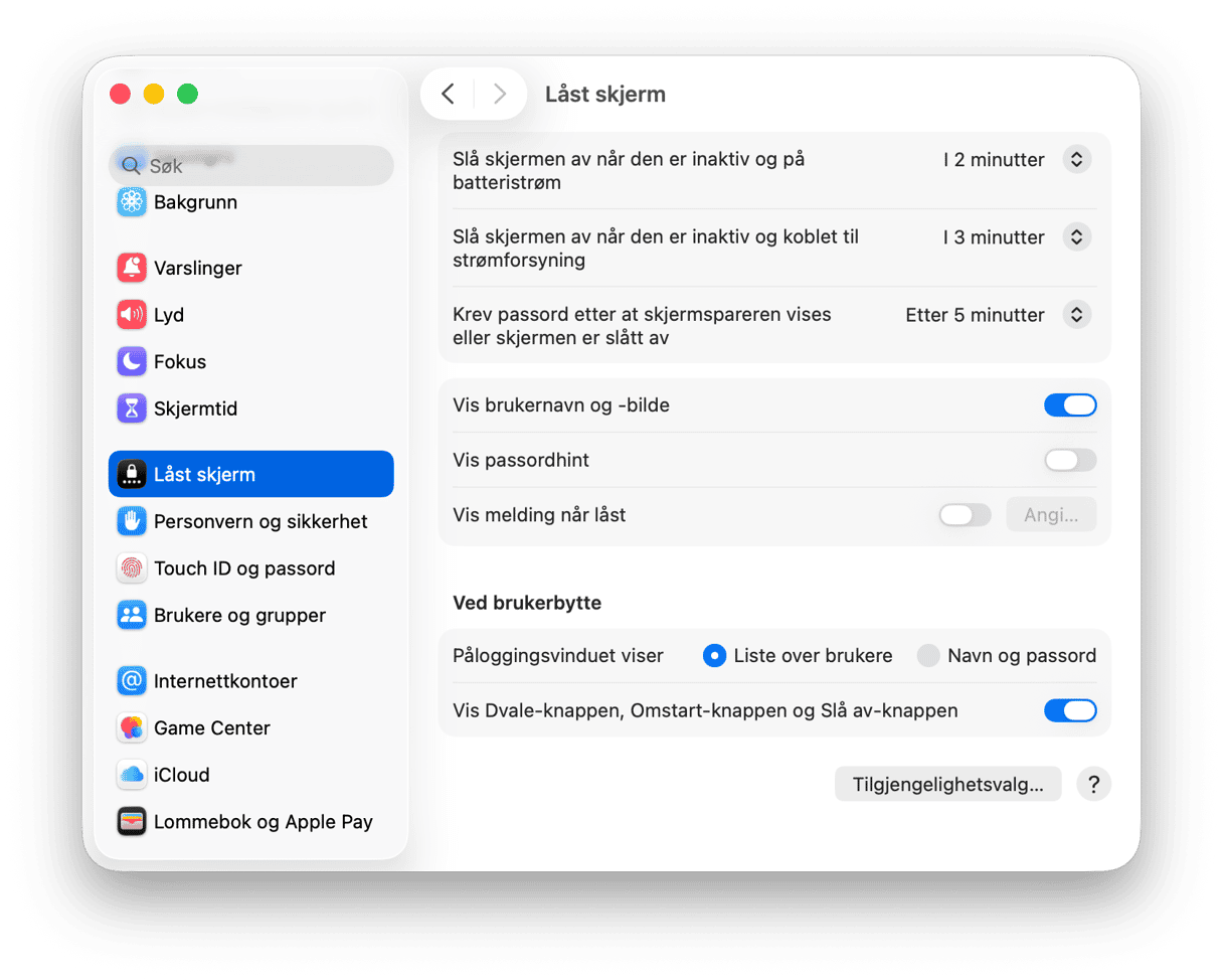 - Fra Apple-menyen går du til Systeminnstillinger > Låseskjerm.