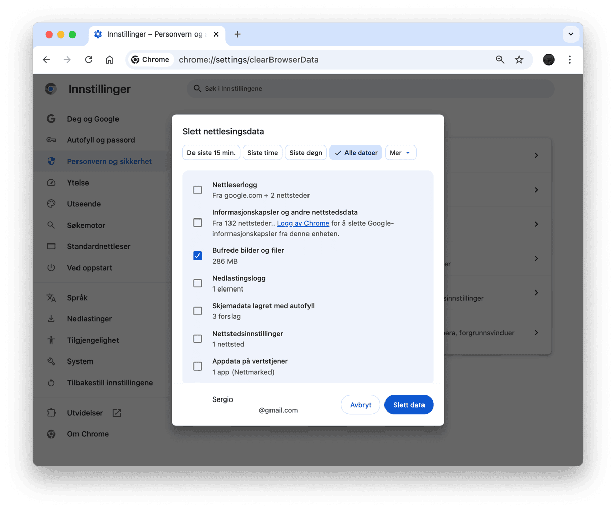 - Gå til Innstillinger > Personvern og sikkerhet > Slett nettleserdata.