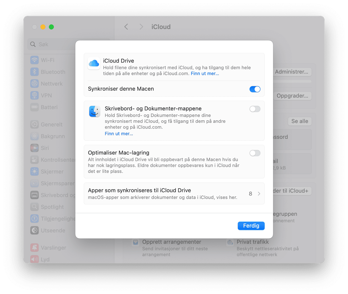 - Gå til Apple-hovedmenyen > Om denne Mac-en > Mer info > Lagringsinnstillinger.