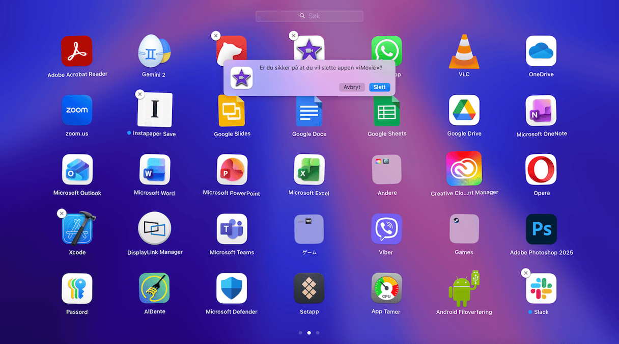 Slett apper via Launchpad