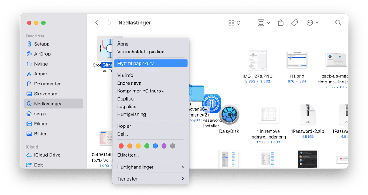 - Høyreklikk filene du vil kvitte deg med og klikk på Flytt til papirkurv.