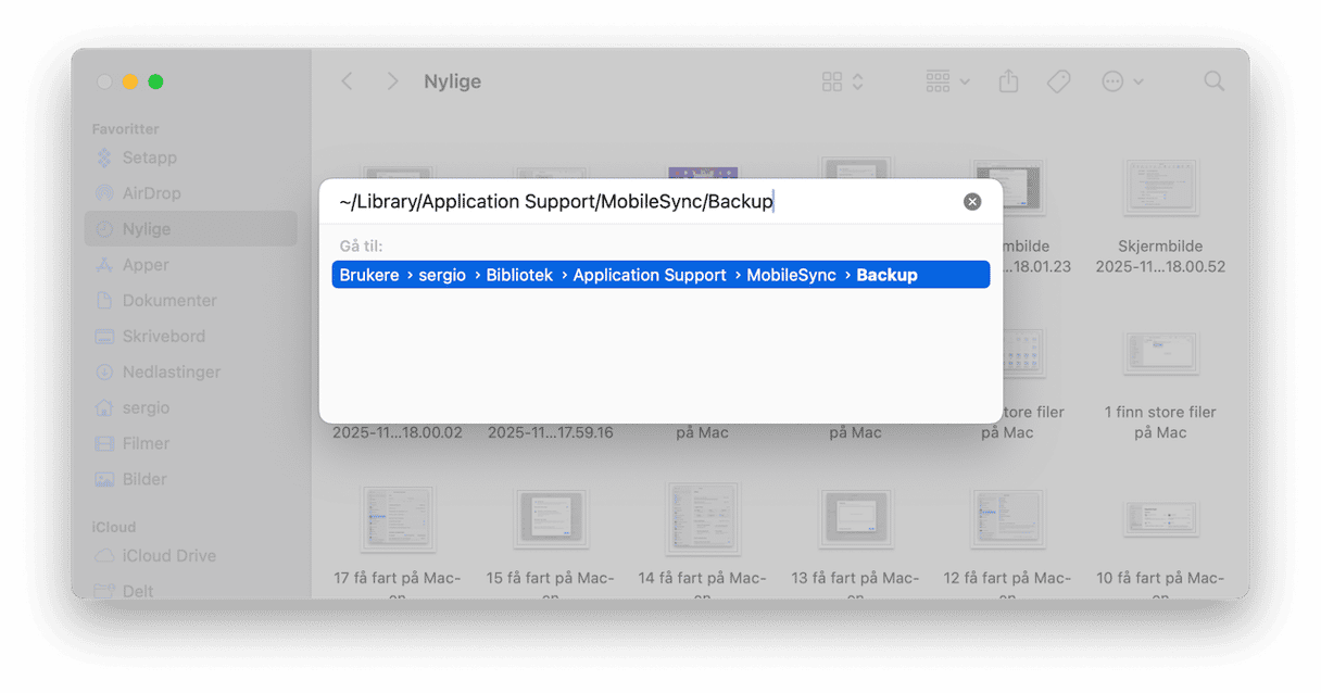 ~/Library/Application Support/MobileSync/Backupog trykk på returtasten. - Flytt innholdet i mappen til papirkurven, og det er det.