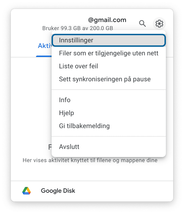 - Gå til Google Disk-ikonet > Innstillinger igjen.