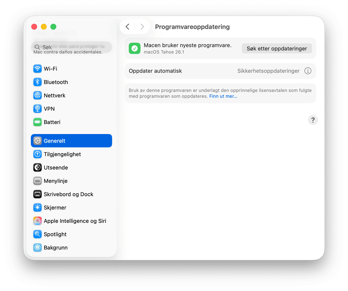 - Gå til Apple-menyen > Systeminnstillinger > Generelt.