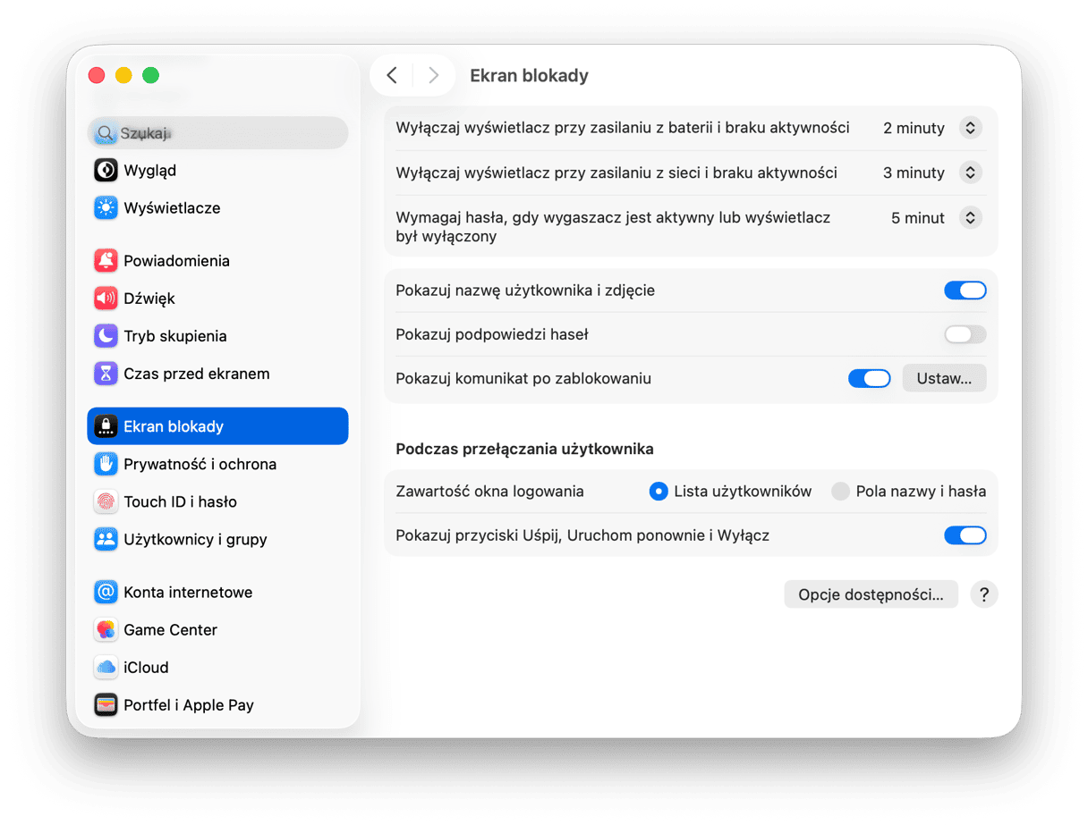- Otwórz menu Apple > Ustawienia systemowe > Blokowanie ekranu.