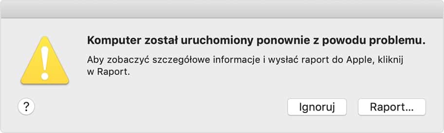 Po ponownym uruchomieniu Mac wyświetli powiadomienie o przyczynach awarii. Możesz kliknąć przycisk Raport... by zobaczyć szczegóły.