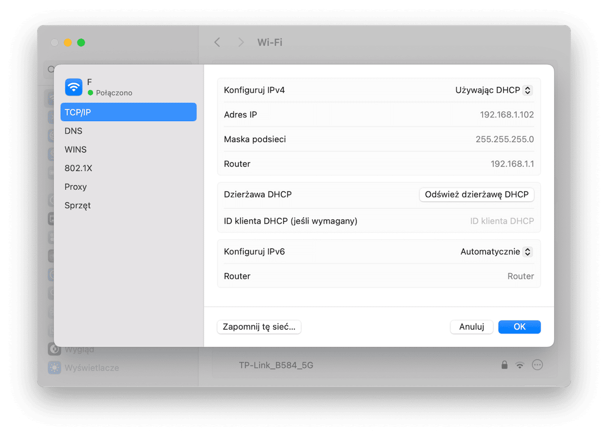 - Kliknij Szczegóły obok Twojej sieci Wi-Fi i przejdź do TCP/IP.