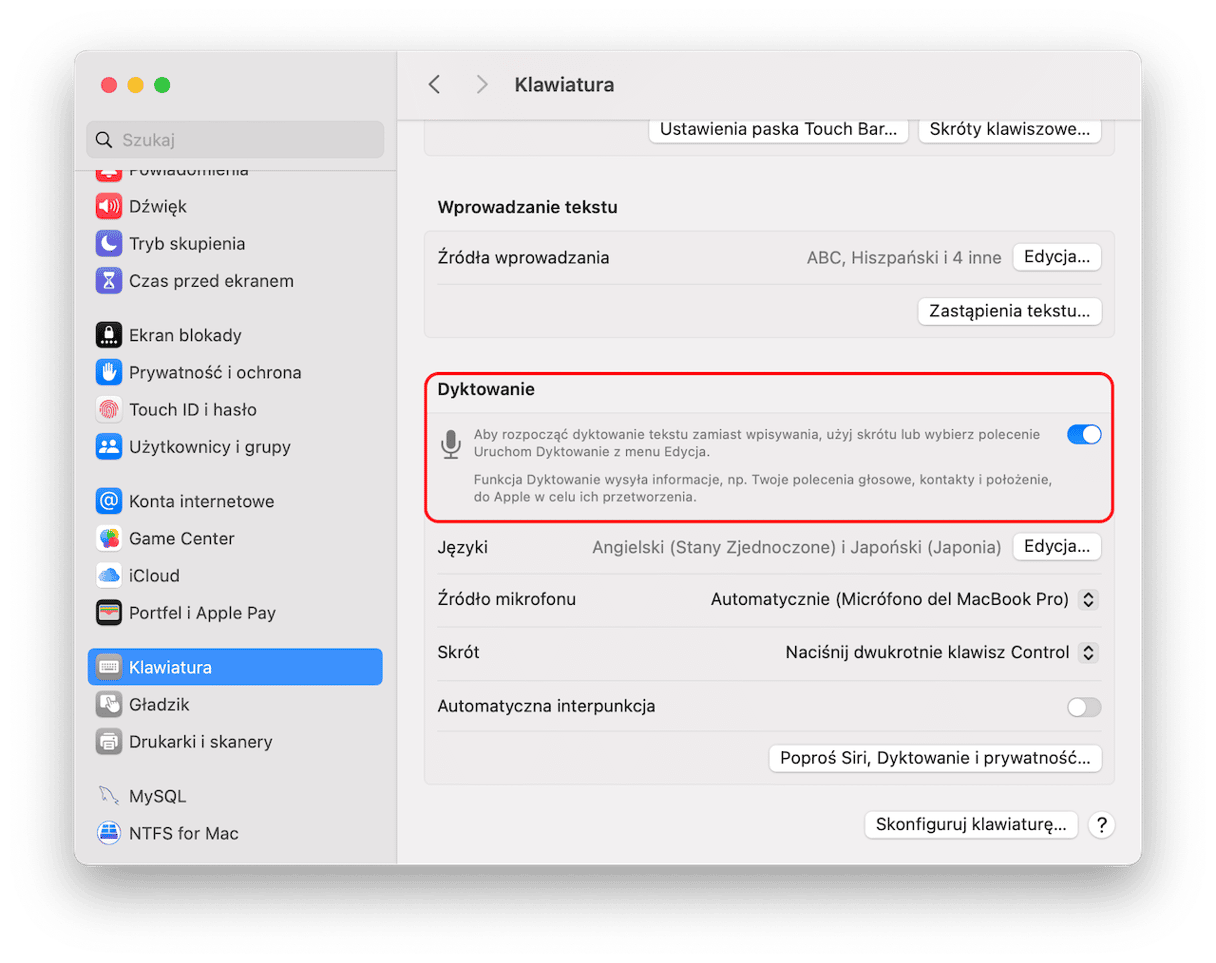 Po włączeniu dyktowania, jeśli funkcja jeszcze nie była wykorzystywana, zostaną zainstalowane nowe sterowniki i systemy. Mac automatycznie je znajdzie i pobierze, co ma wymusić włączenie mikrofonu.