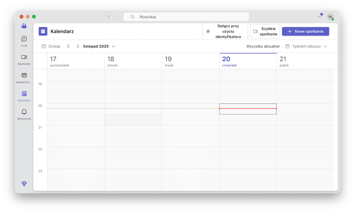 Teams jest narzędziem komunikacyjnym, które, podobnie do Slack, pozwala wysyłać wiadomości do ludzi w Twojej organizacji, tworzyć grupy i kanały, udostępniać pliki, nawiązywać połączenia audio i wideo i organizować spotkania, których uczestnicy mogą udostępniać ekrany i prezentacje. Również oferuje integracje z innymi aplikacjami, na przykład Workday, umożliwiając dostęp do nich przez Teams.