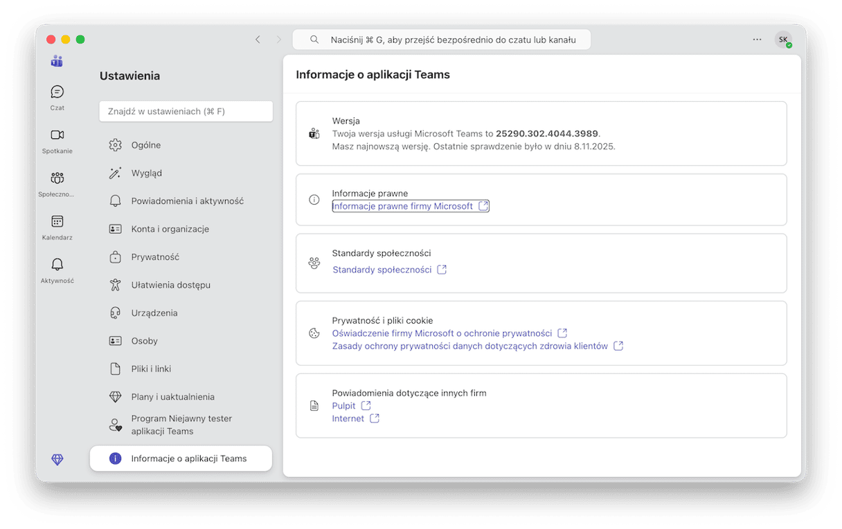 4. Sprawdź uaktualnienia dla Teams i macOS