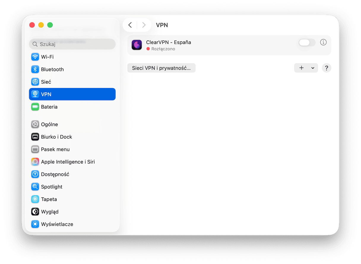 Aby wyłączyć VPN, otwórz Ustawienia systemowe > VPN i wyłącz VPN. Również możesz kliknąć VPN w pasku menu i wyłączyć stąd.