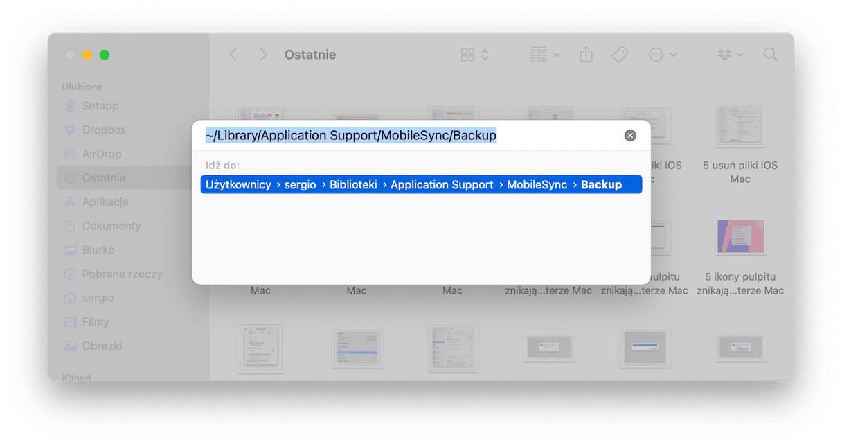 ~/Biblioteki/Application Support/MobileSync/Backup/i naciśnij Return.