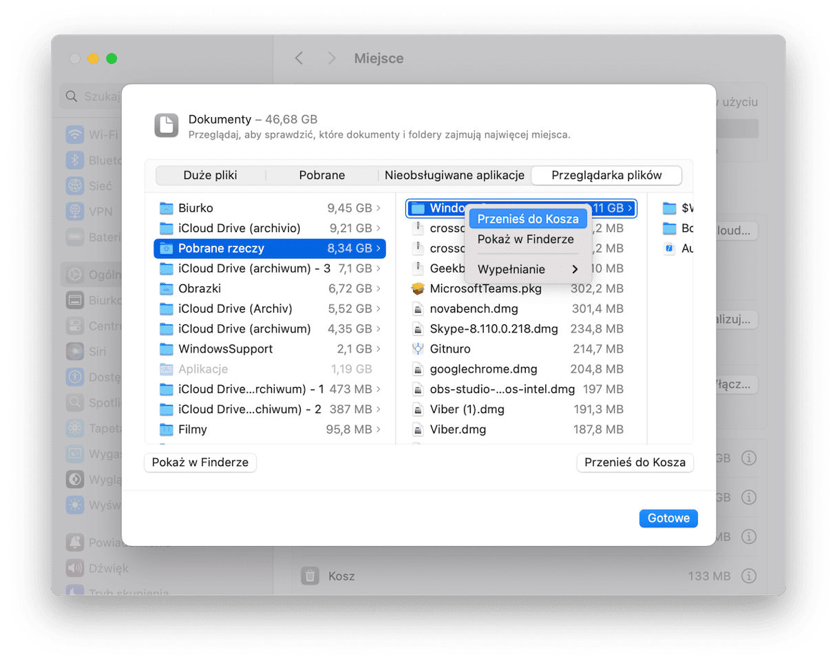 - Przejrzyj pliki i przenieś do Kosza niepotrzebne.