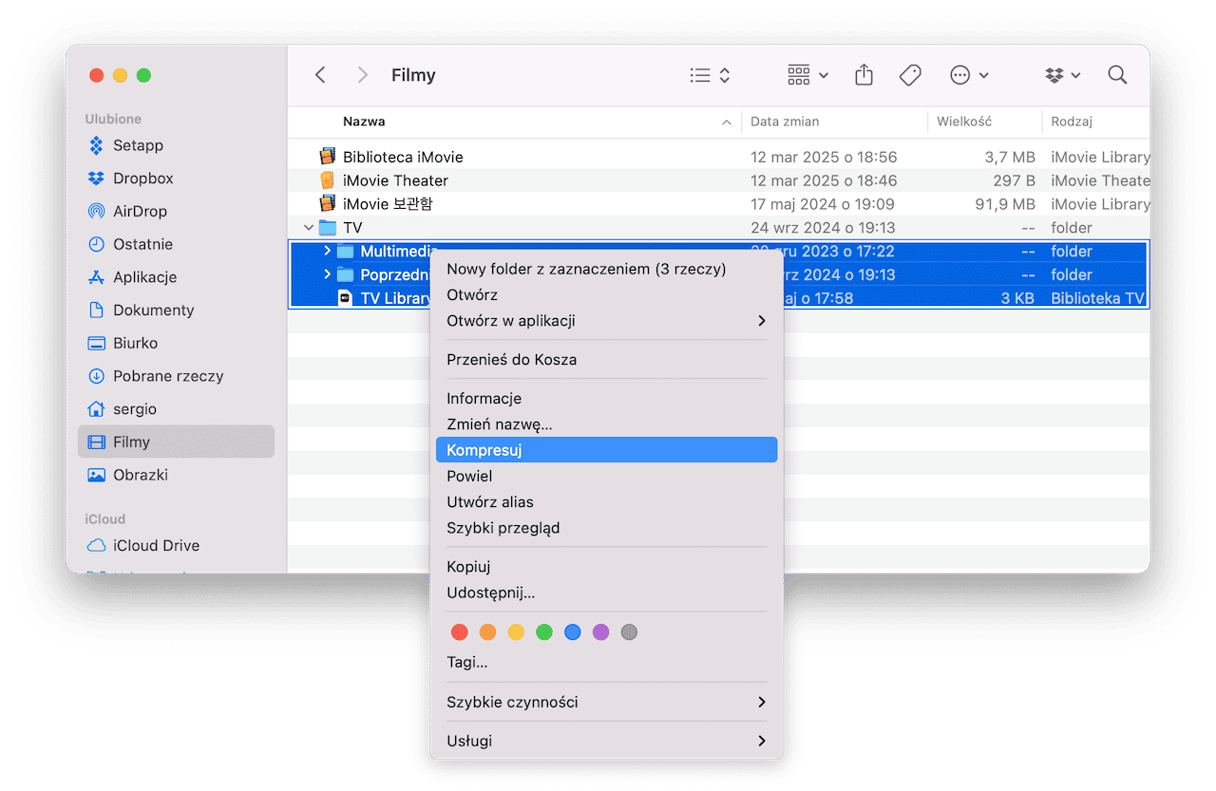 Folder Filmy może być utrapieniem – nie dlatego, że musisz przejrzewać mnóstwo plików, ale z racji tego, że trudno jest naważyć się na usunięcie rzeczy. Niestety musimy coś poświęcać na korzyść zdrowia Maca. Niemniej, możesz archiwizować filmy, które chcesz zachować. Więc archiwizuj to, co ma zostać i usuń resztę.