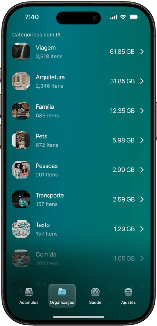 Saiba exatamente quanto espaço o app Fotos usa, tanto no dispositivo quanto no iCloud. E qual categoria de fotos (pets?) é a mais espaçosa.