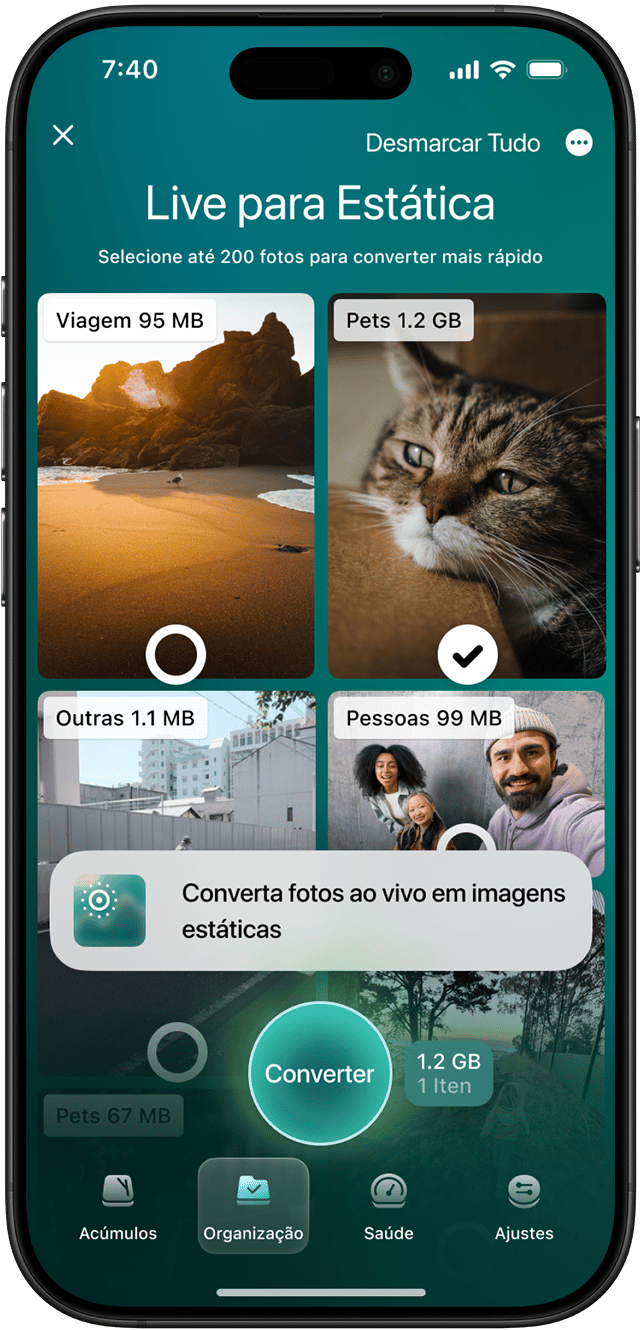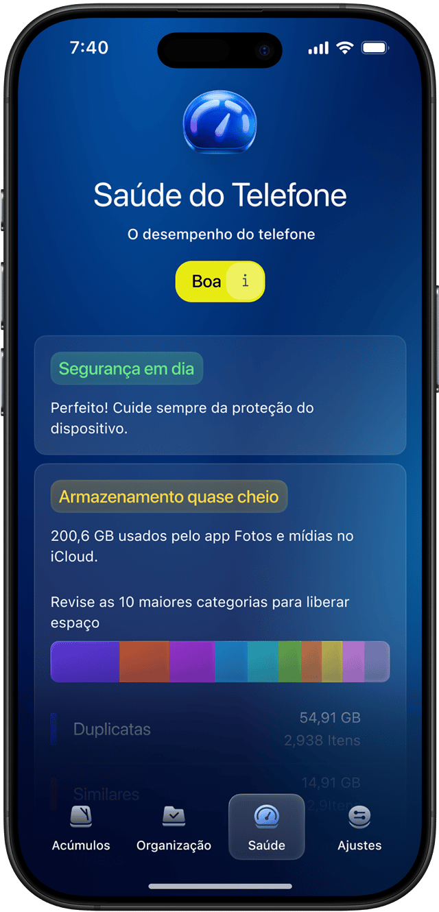 Garanta o funcionamento ideal do iPhone com a verificação do estado de saúde e as análises do armazenamento e de segurança.