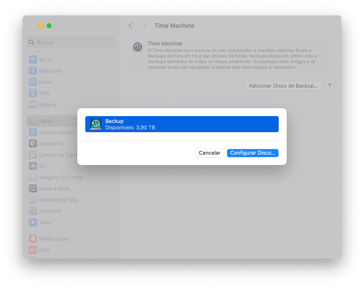 - Acesse Ajustes do Sistema > Geral > Time Machine.