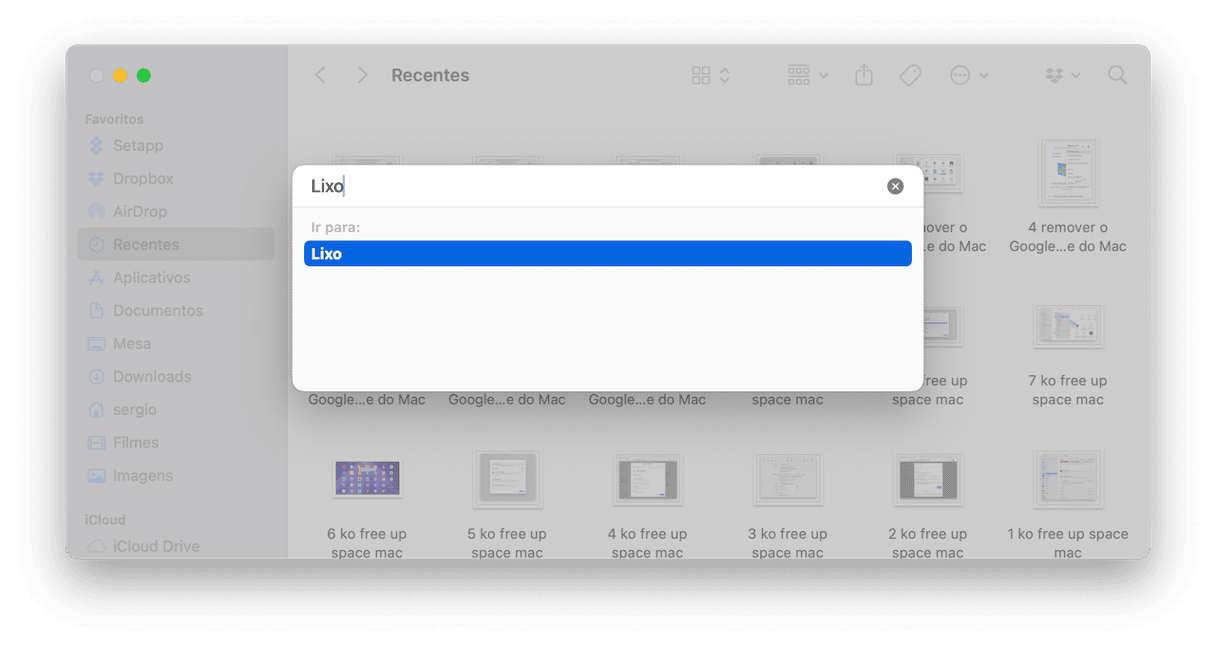 - No Finder, clique em Ir > Ir para Pasta, digite Lixo e pressione Return.