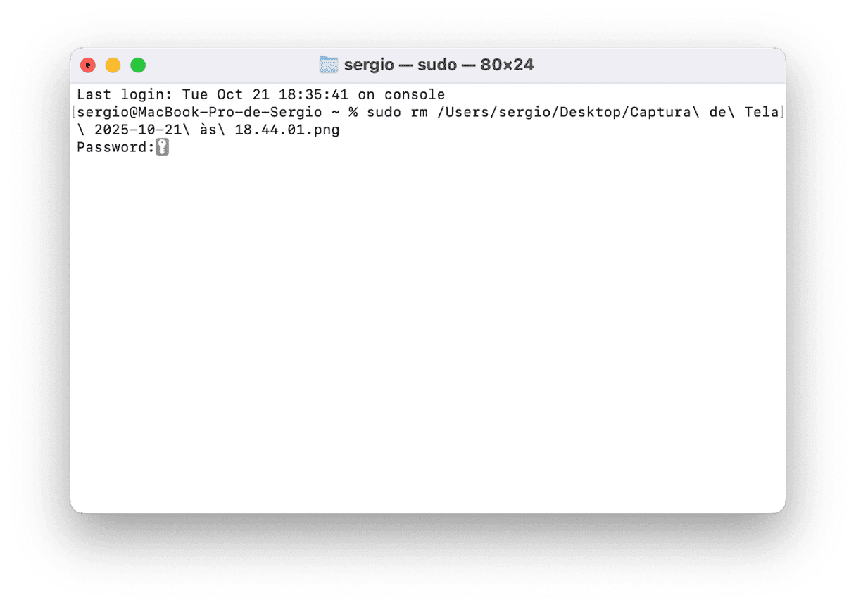 - Abra o Terminal, digite “sudo rm” seguido de um espaço e não pressione Return ainda.