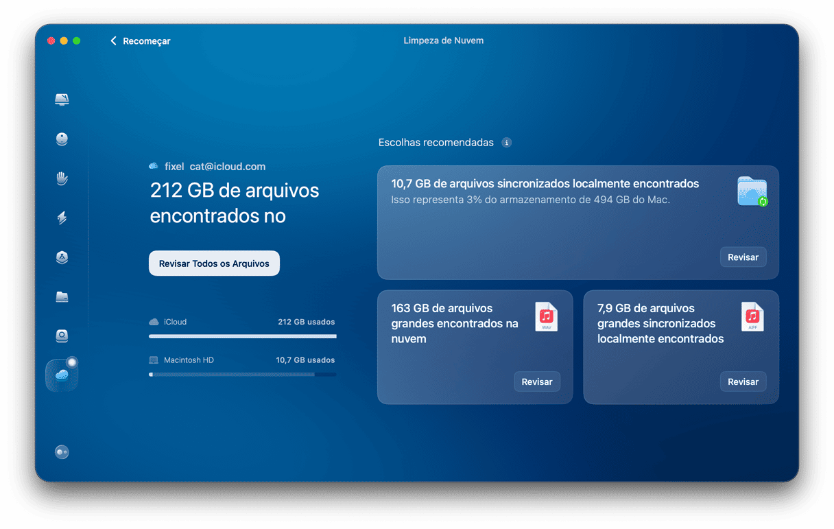 Essa ferramenta dá uma visão clara do que está no iCloud Drive, mostra quais arquivos ocupam mais espaço e destaca os itens grandes e potencialmente desnecessários. Você só precisa revisar e remover.Veja como começar a usá-la: