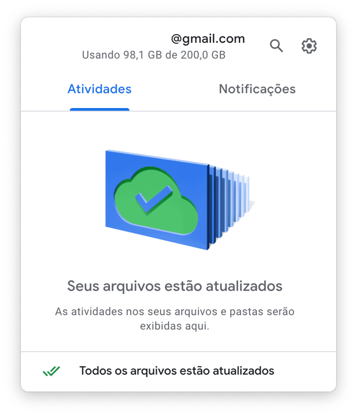 - Clique no ícone do Google Drive na parte direita da barra de menus. Caso não o encontre lá, abra o app Google Drive a partir da pasta Aplicativos.