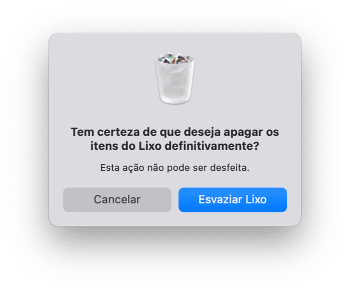 Sério: pode parecer incrivelmente básico, mas isso pode limpar uma quantidade surpreendente do armazenamento. Eu esqueço o tempo todo. A verdade é que, ao apagar um item, o Mac não o remove — ele apenas o move para o Lixo. E como você provavelmente já apagou muitas outras coisas, tudo isso pode estar no Lixo, desperdiçando espaço. Esvazie o Lixo para eliminar tudo de uma vez:
