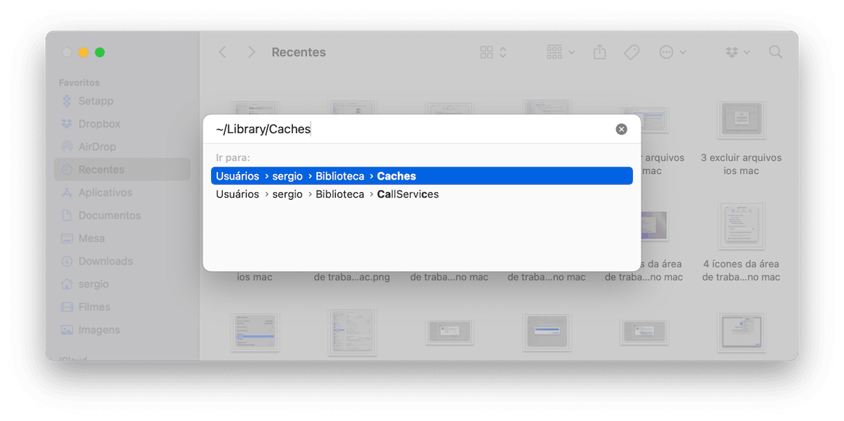 - Digite /Biblioteca/Caches (sem o til “~”)