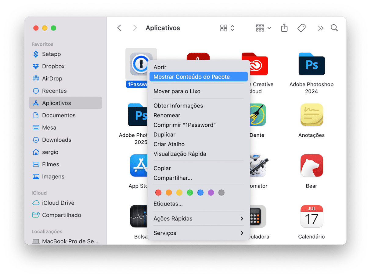 - Selecione “Mostrar Conteúdo do Pacote”.
