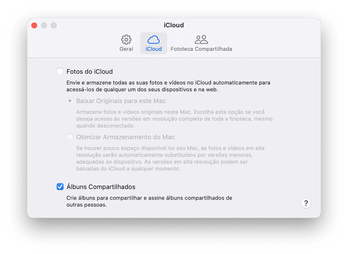 Se você selecionar a opção “Fotos do iCloud”, a fototeca será conectada ao iCloud. E, mais importante, se você selecionar “Otimizar Armazenamento do Mac”, parte da fototeca será movida para o iCloud. Dessa maneira, o macOS ajudará a economizar um espaço precioso. O plano gratuito do iCloud permite que você libere até 5 GB de armazenamento.