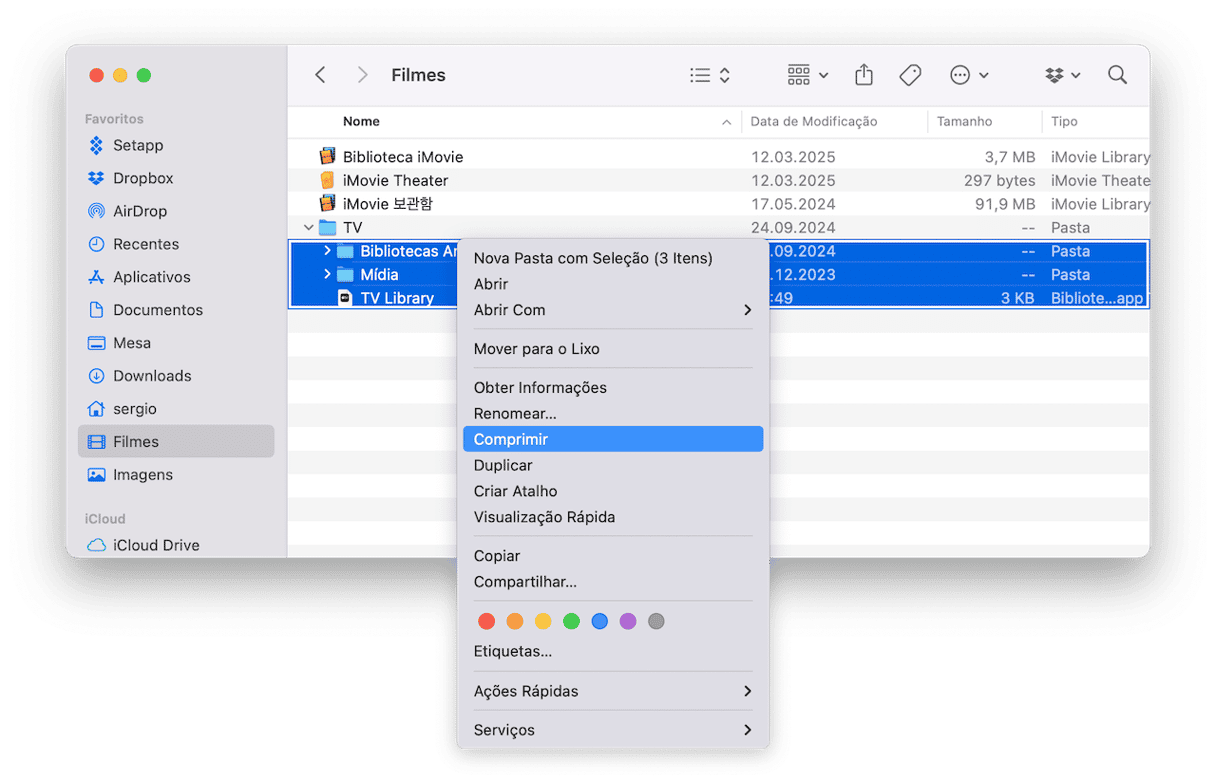 - Controle + clique no arquivo que deseja comprimir (recomendado para arquivos de filmes).