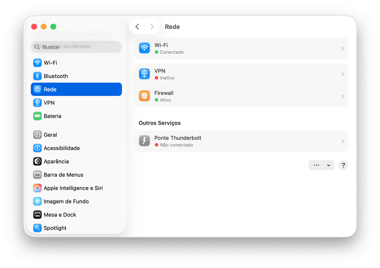 Os ajustes de firewall do Mac ficam em Ajustes do Sistema > Rede. Veja se a opção Firewall está ativada. Clique em Opções para configurar o acesso das conexões recebidas. Caso receie que alguém esteja acessando seu Mac remotamente, bloqueie todas as conexões recebidas. Para conferir os ajustes de firewall do roteador, acesse a página de administração do dispositivo. O endereço IP da página aparece no manual ou no próprio roteador (em um adesivo atrás ou embaixo do dispositivo). O nome e a senha padrão também devem estar no mesmo local. Depois de iniciar a sessão, procure os ajustes de firewall.