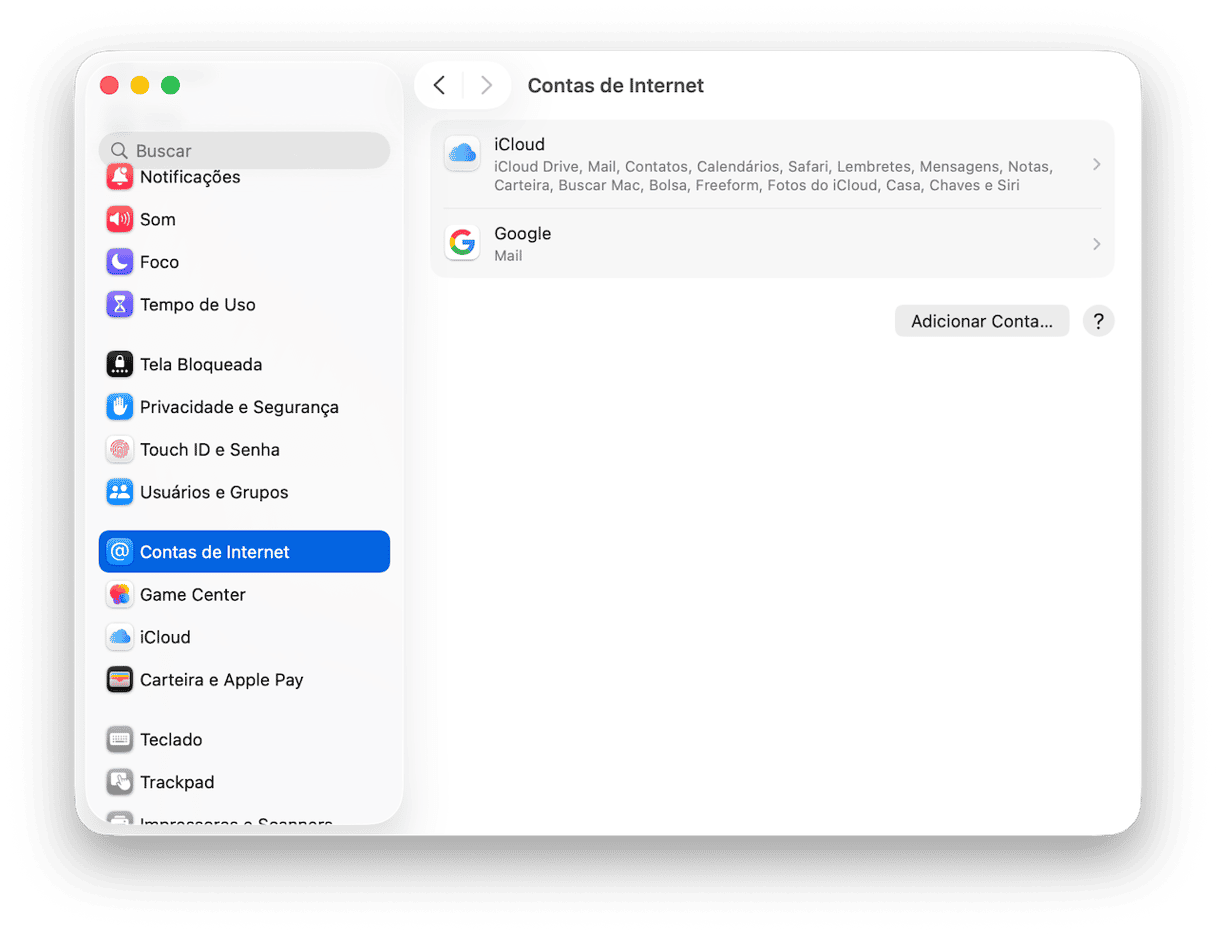 - Acesse Ajustes do Sistema > Contas de Internet.