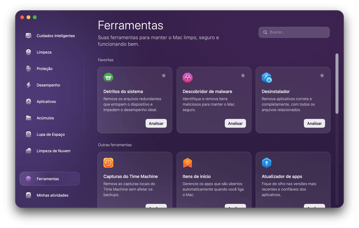 Para ter acesso mais rápido ao Desinstalador, experimente o novo recurso Ferramentas. Com ele, você consegue desinstalar apps diretamente, sem fazer uma análise dos aplicativos. E ainda dá para adicioná-lo aos Favoritos para encontrá-lo com as outras ferramentas que você usa com frequência.