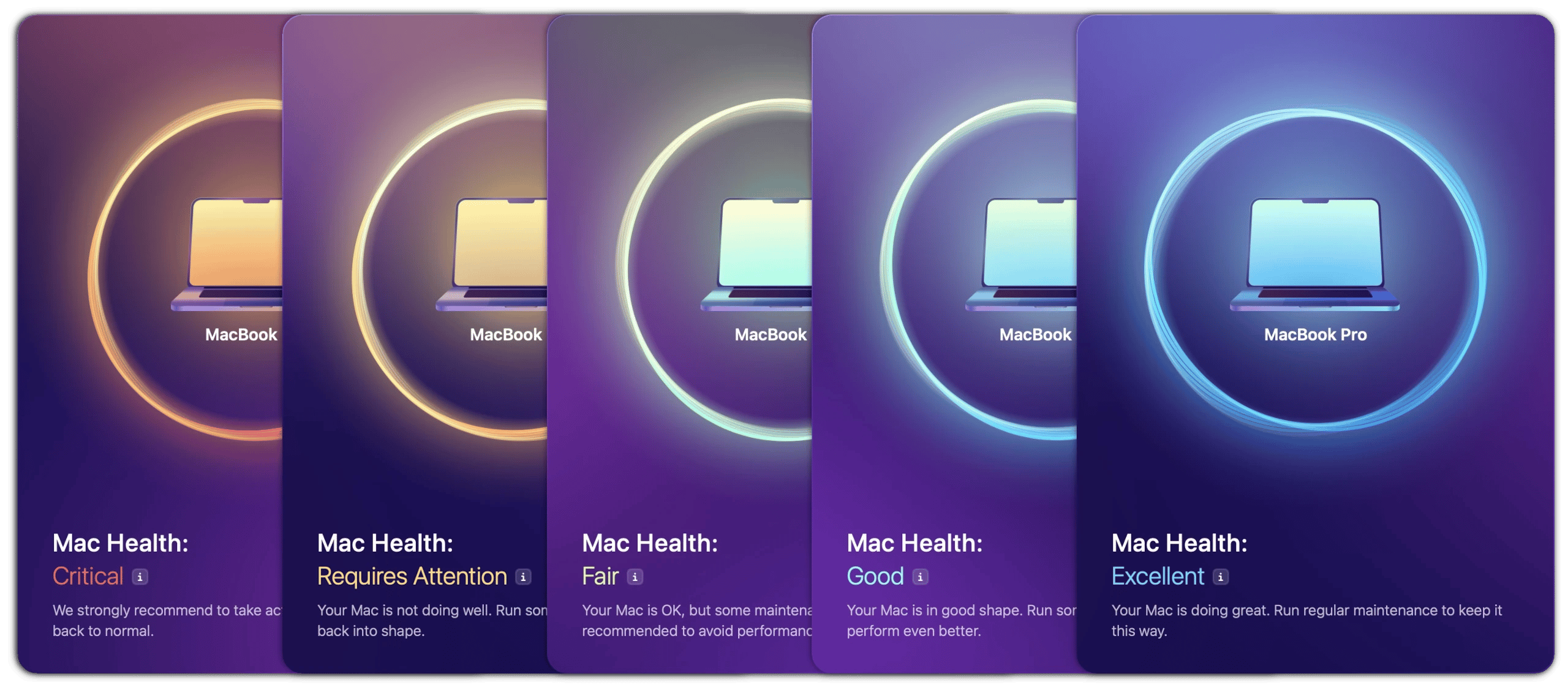 CleanMyMac assigns a health score to your Mac, ranging from 'Excellent' to 'Critical', which reflects its current condition: