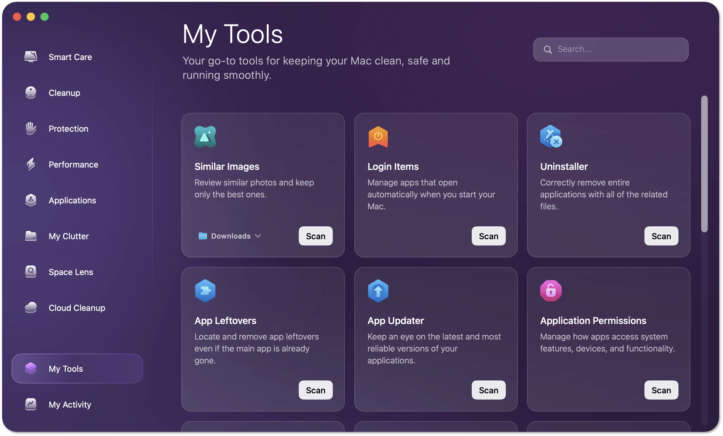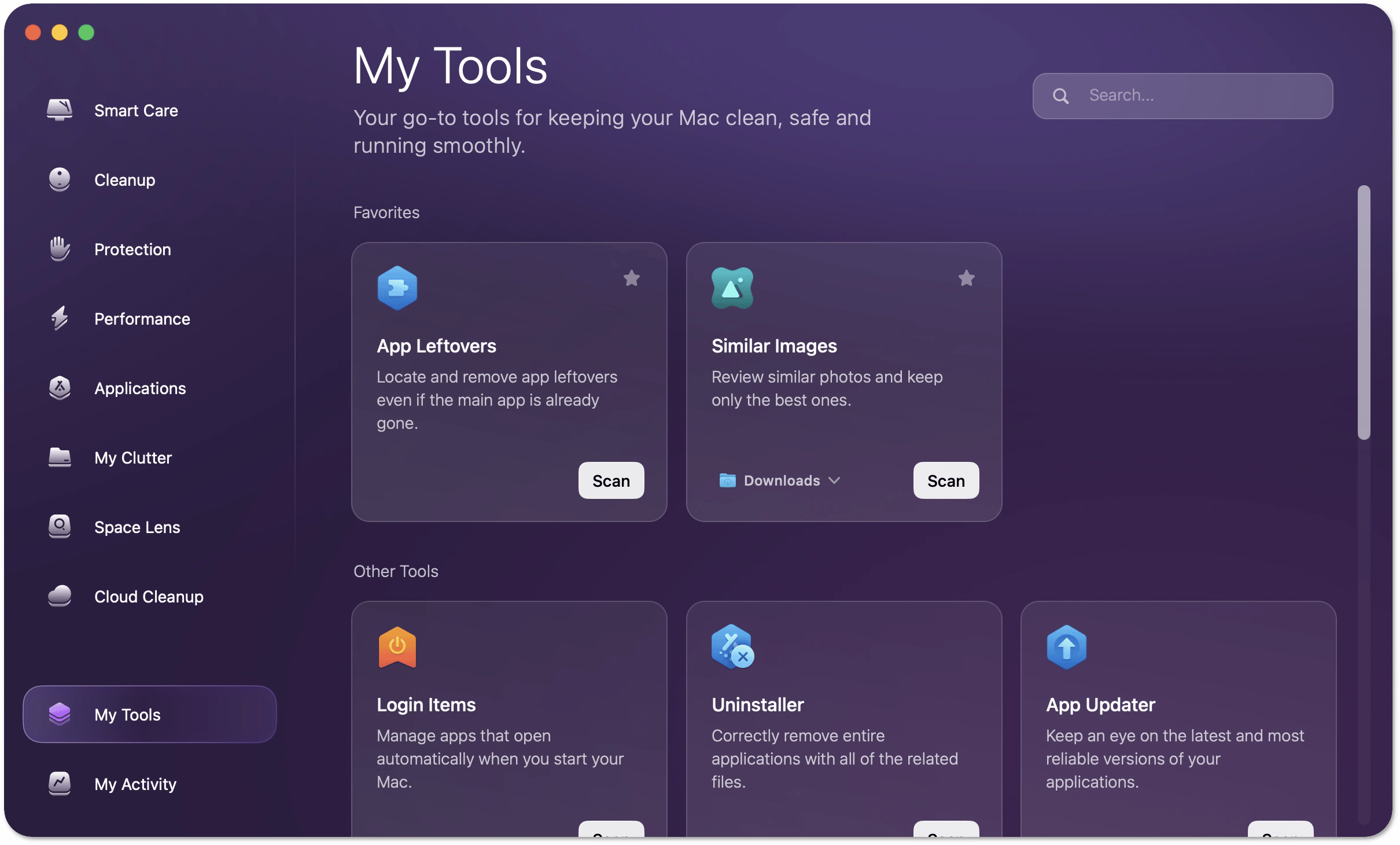 CleanMyMac offers the following tools to help you keep your Mac clean, safe, and running smoothly.