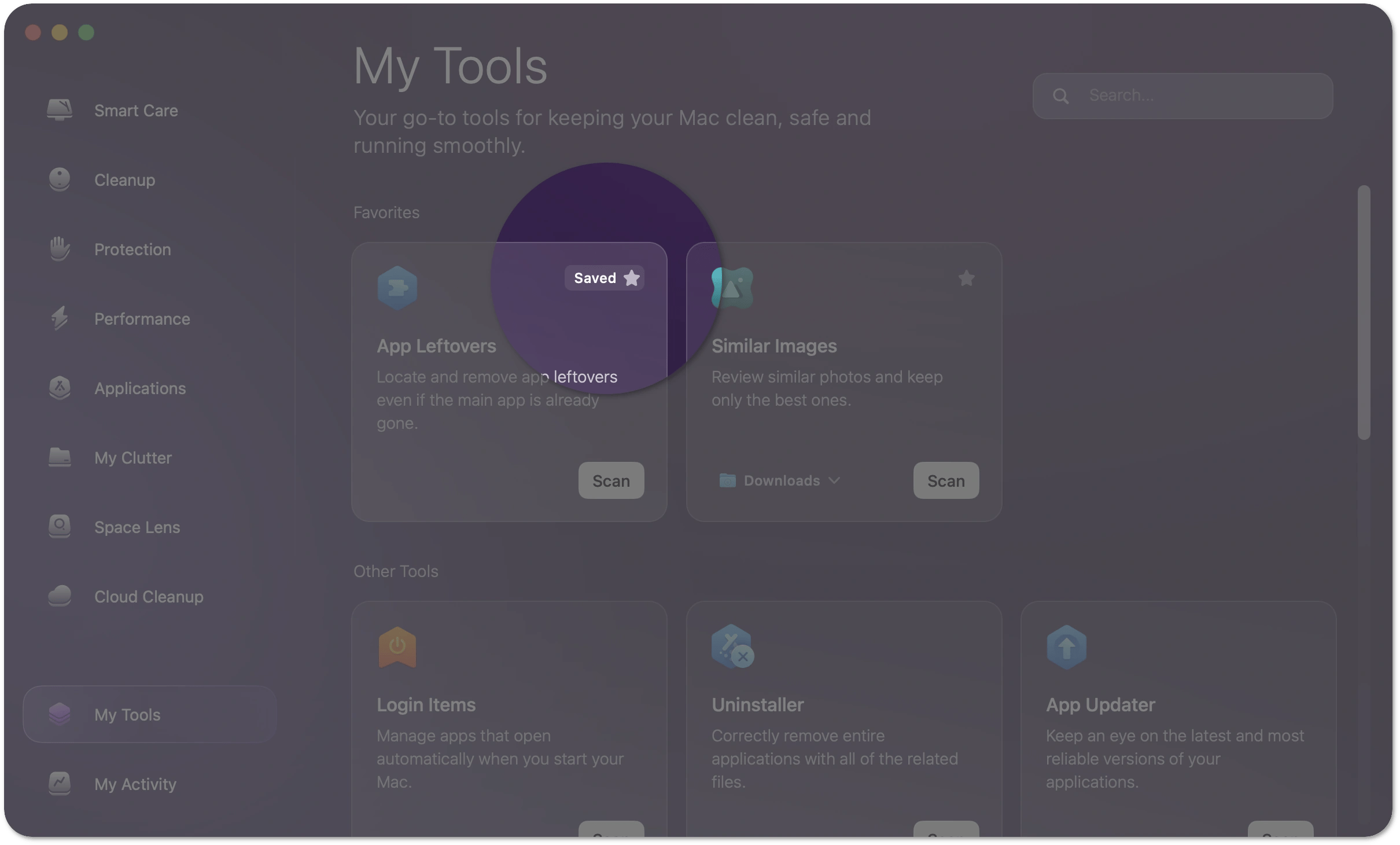 | App Leftovers | Applications | Locate and remove app leftover files, even if the app has already been removed. |
