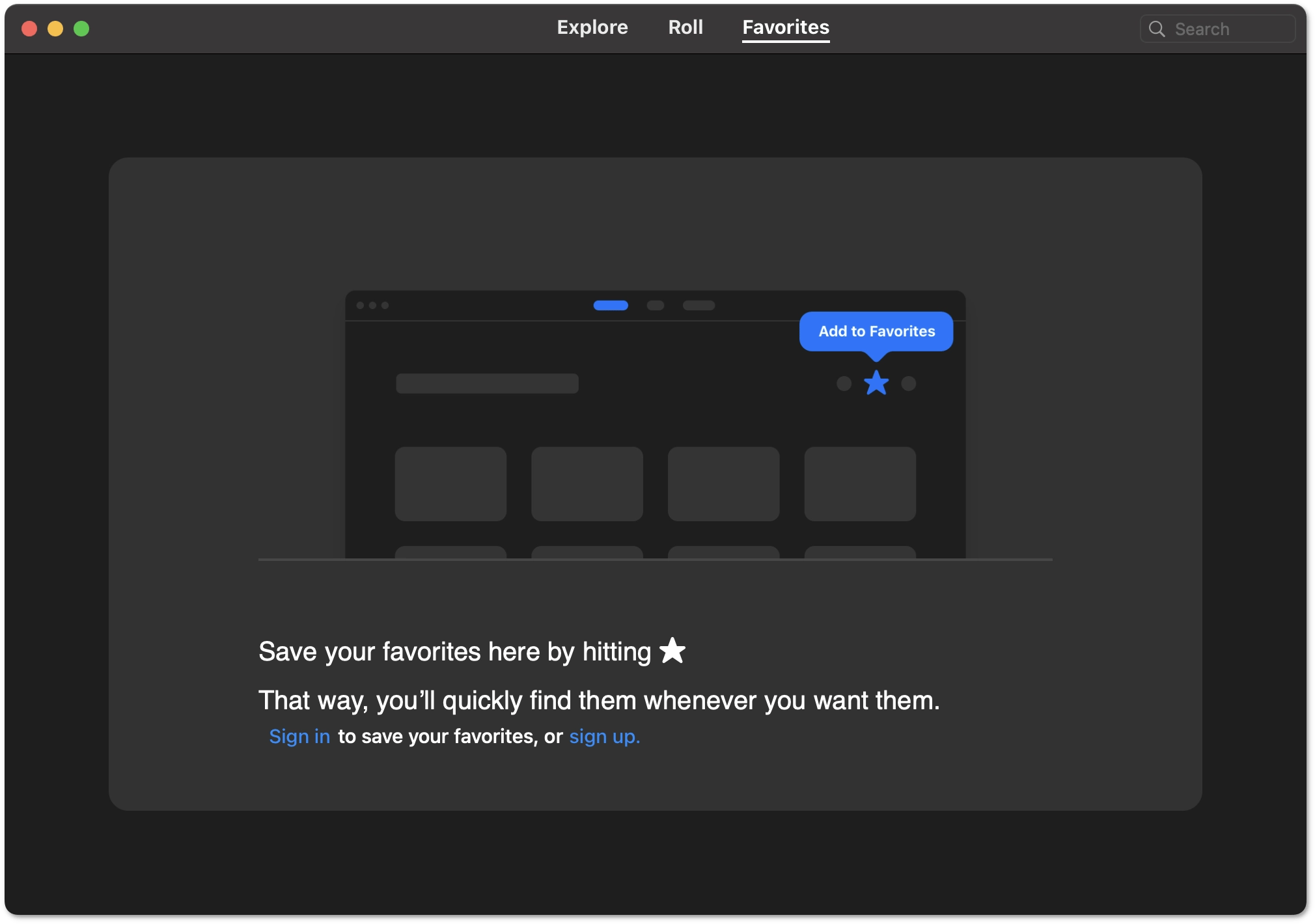 Using Favorites requires authorization — this ties your selections to your account and lets you access your beloved pictures on any Mac where you're signed in to your Wallpaper Wizard 2 account.