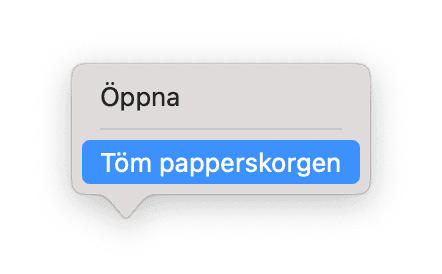 Ifall du inte kan öppna papperskorgen för att radera allt innehåll så finns det ett sätt att göra det via Dock. Med Option-tangenten kan du öppna alternativen och rensa papperskorgen utan att öppna mappen.