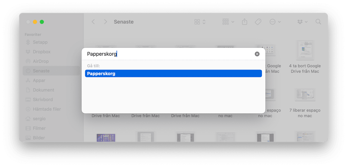 - Öppna ett nytt Finder-fönster, klicka på Gå > Gå till mapp och skriv Papperskorgen och tryck sedan på returtangenten.